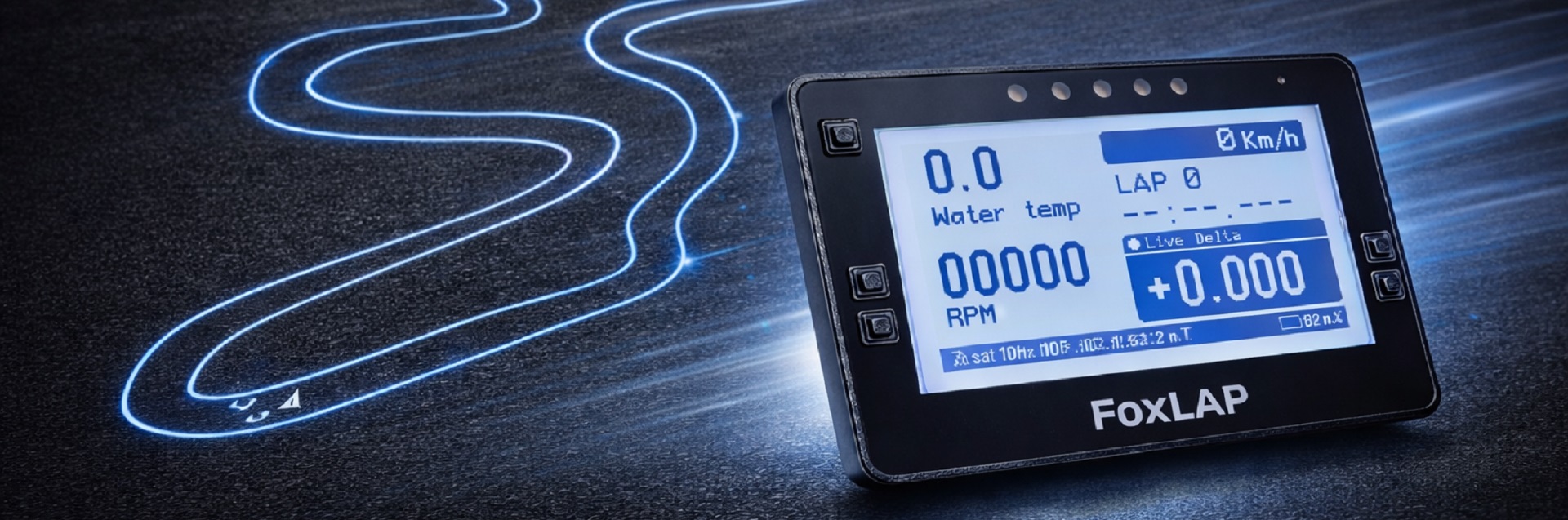 FoxLAP 2 marks a new step in recording and analyzing performance in motorsports. It features a 4-inch display for optimal readability in all conditions, an integrated LED system for instant visual feedback, and an acrylic overlay that both protects the screen and reinforces its identity. On the sensor side, the essentials are still there — and better exploited than ever: